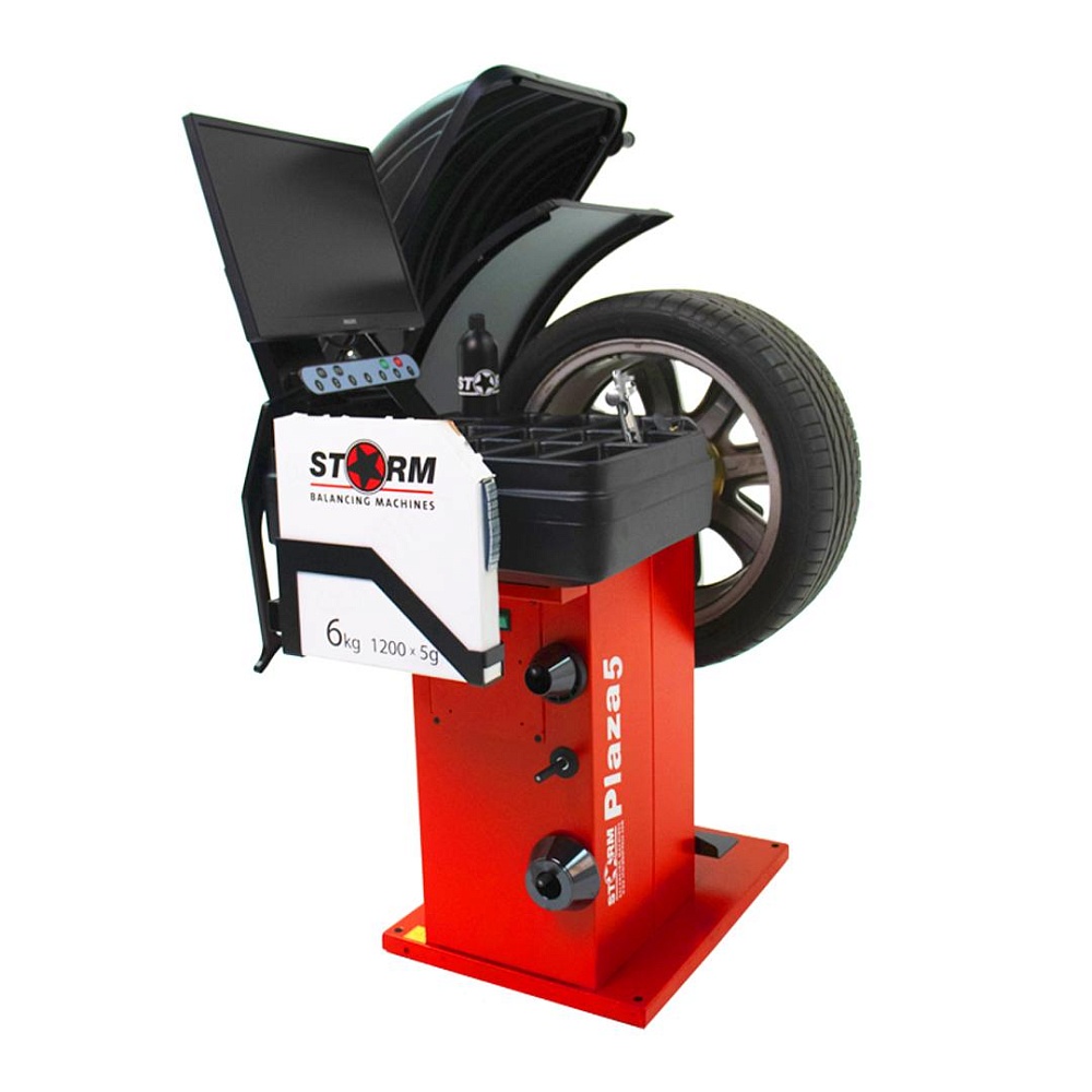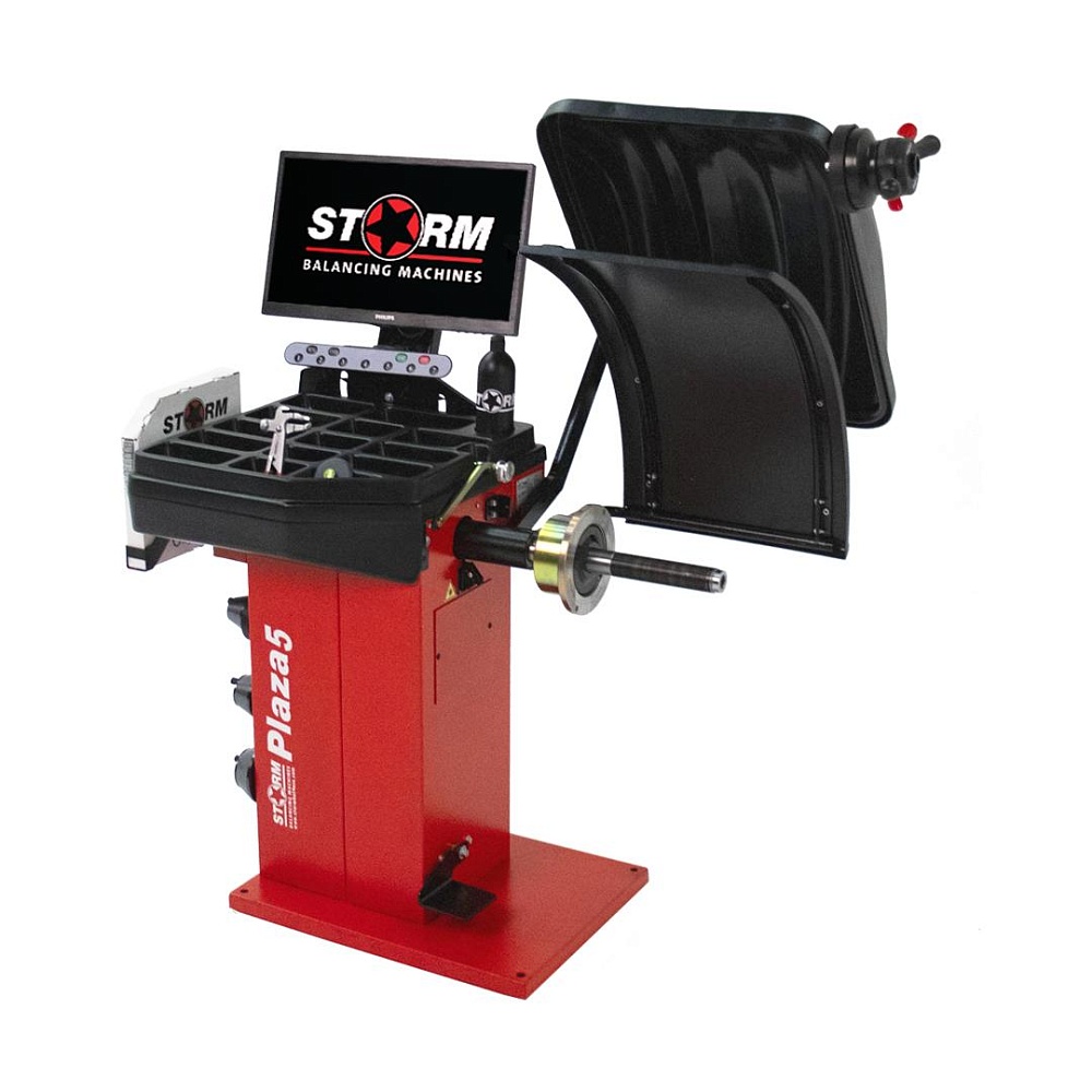 Станок балансировочный СТОРМ Plaza-5 – автоматический балансировочный станок с микропроцессорным управлением и обработкой информации от российской компании, произведен и собран на заводе в Санкт-Петербурге. Является улучшенной версией станка Plaza 3.СТОРМ Plaza-5 – прецизионное (высокоточное) устройство, которое применяется для балансировки колес легковых автомобилей, микроавтобусов и легких грузовиков с диаметром диска до 30 дюймов и шириной до 20 дюймов. Как и все балансировочное оборудование СТОРМ, сочетает в себе надежность и простоту использования, а также гарантию 24 месяца, в том числе на гайку и вал.Станок обеспечивает измерения статического (при свободном вращении) и динамического (при вращении на высокой скорости) дисбаланса колеса. Кроме того, СТОРМ Plaza-5 осуществляет вычисление масс корректирующих грузов и их положения в двух плоскостях коррекции (на наружной и внутренней сторонах диска колеса) за один цикл измерения.Особенности:- Увеличенная линейка дистанции для более широких дисков (+25 мм);- Клавиатура вынесена на кронштейн монитора - экономия дополнительного места на рабочем столе.- Неподвижная часть кожуха выполнена из пластика со скруглёнными элементами, что защищает от травм в процессе эксплуатации;- Специальное место для емкости с обезжиривателем. Емкость идет в комлекте со станком.- На кожухе установлен специальный крепеж для быстросъемной гайки. Она больше не занимает место на рабочем столе и располагается удобно для оператора.- На станке сделано специальное отверстие для хранения молотка-клещей, что освобождает пространство на рабочем столе и позволяет оператору легко воспользоваться молотком при необходимости.- В Plaza 5 установлен кронштейн, в который помещается лента грузиков балансировочных СТОРМ (6 кг). Данное нововведение позволяет расчистить рабочий стол, а также ускорить обслуживание. Когда лента заканчивается, достаточно вытащить упаковку из кронштейна и вставить новую.