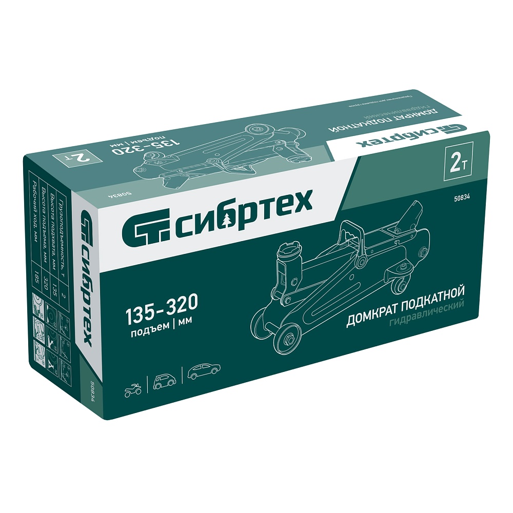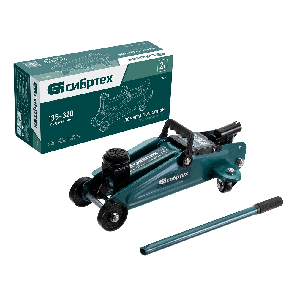 Гидравлический подкатной домкрат Сибртех 50834 с высотой подхвата 135 мм предназначен для подъема грузов массой до 2 т на высоту до 320 мм. Применяется для обслуживания автомобилей со стандартным клиренсом. Компактный домкрат подходит для самостоятельного использования автовладельцами.