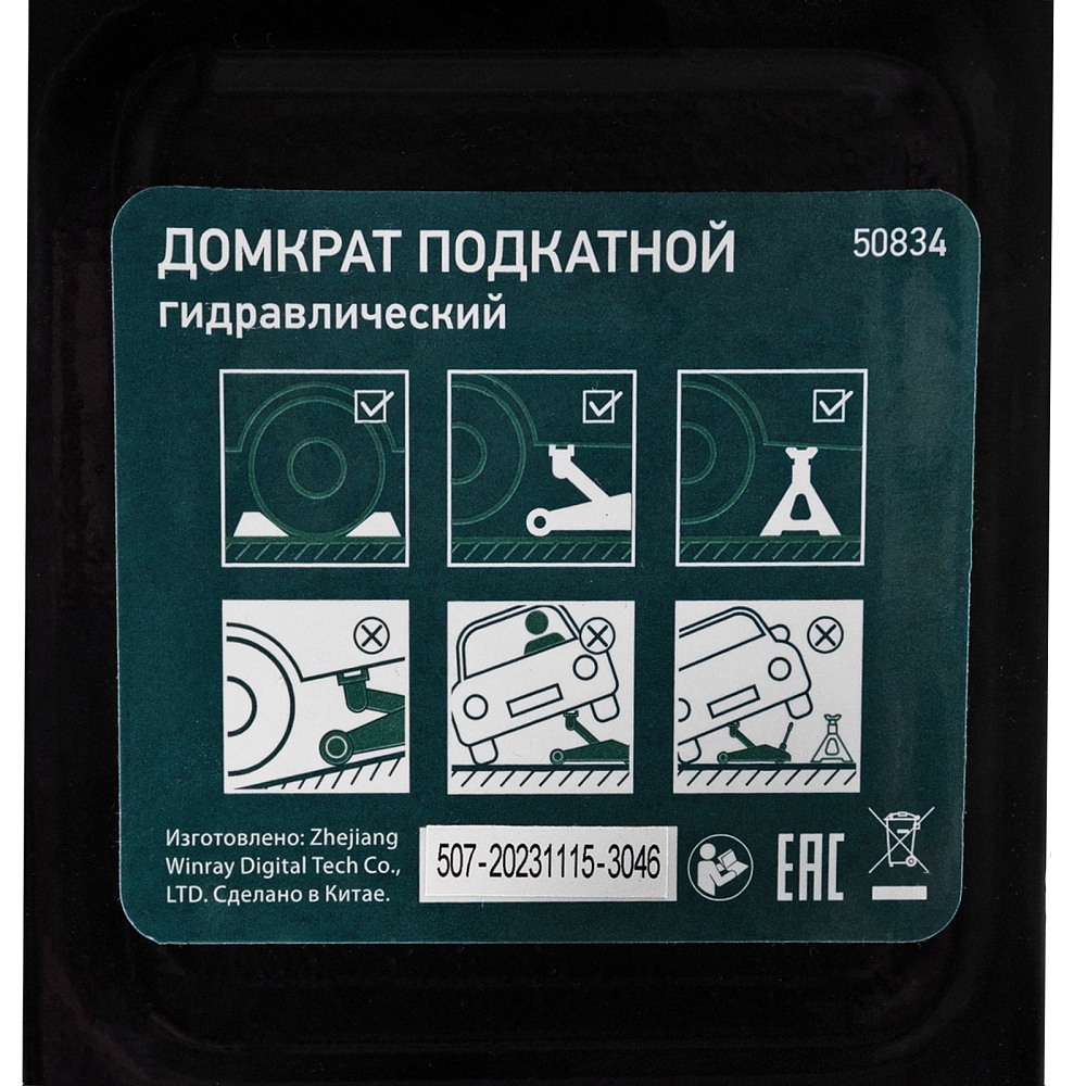 • Безопасность — клапан сброса избыточного давления защищает домкрат от перегрузки, предотвращая подъем груза массой более 2 т.
