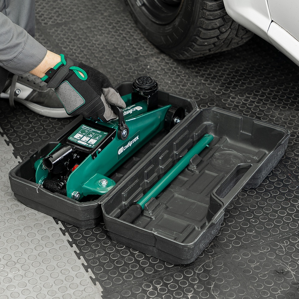 Домкрат гидравлический подкатной, 2 т, 135-320 мм, в пласт. кейсе Сибртех