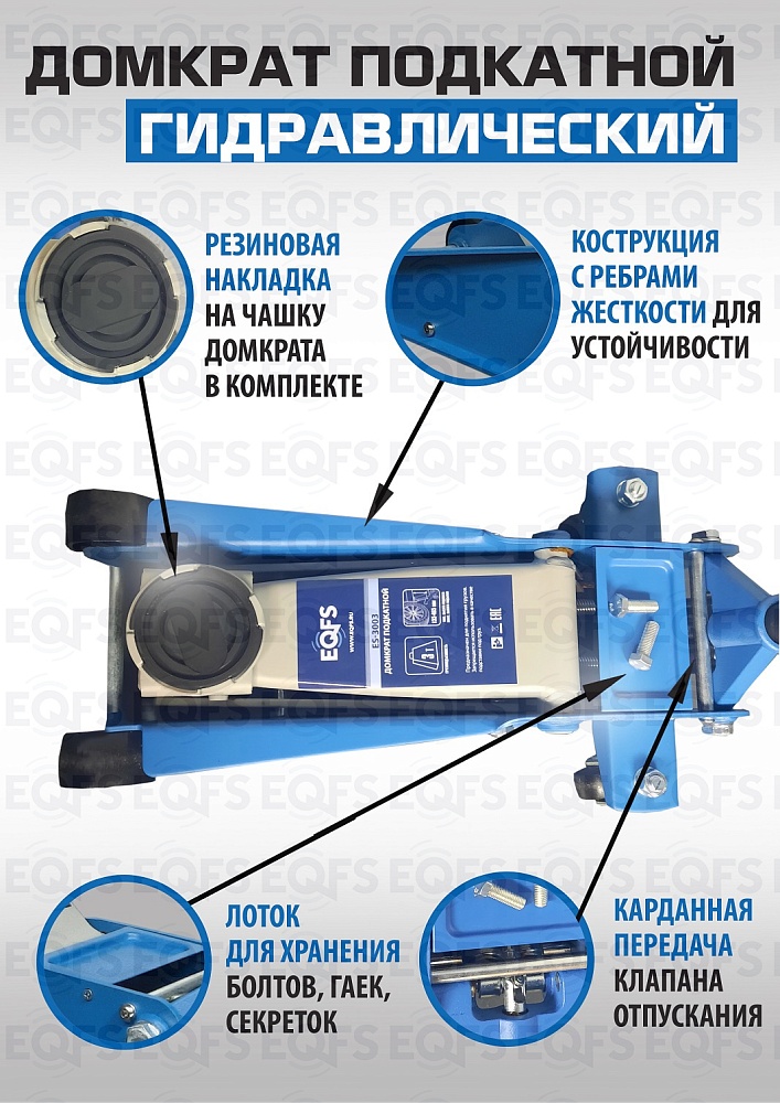 Технические особенности ES-3003 домкрат подкатной 3 тонн:
