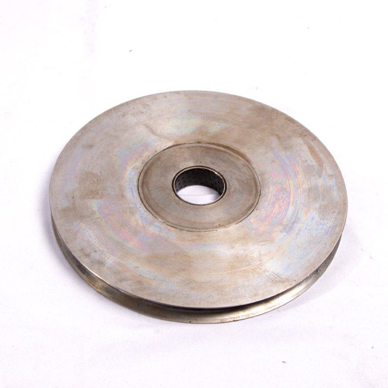 Шкив троса синхронизации (одно ручейковый), предназначен для удержания, направления и перемещения троса синхронизации. Изготовлен из прочного металлического сплава, в посадочное отверстие запрессована сменная перфорированная втулка скольжения. Диаметр: 245мм. Посадочное отверстие: 40мм. Ширина: 21мм. Применяемый трос: 10мм.