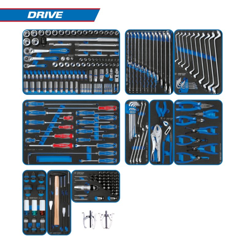 934-251MRVD KING TONY Набор инструментов "DRIVE" для тележки, 10 ложементов, 251 предмет купить в Омске цена ✅ - Все для СТО