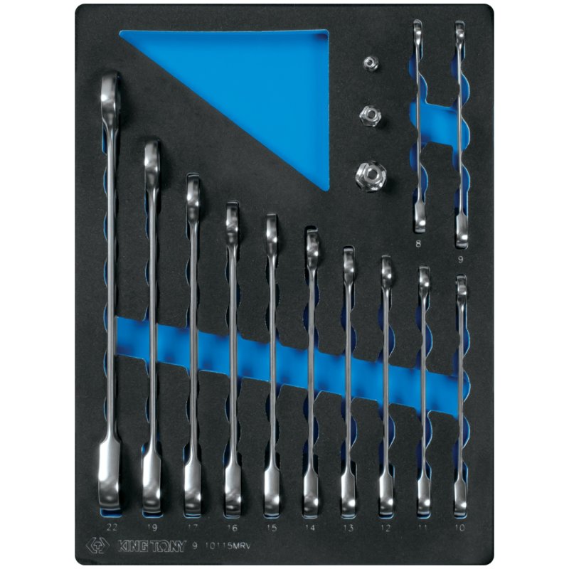 KING TONY Набор комбинированных трещоточных ключей, 8-22 мм, ложемент, 15 предметов KING TONY 9-10115MRV