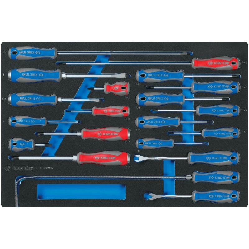 KING TONY Набор отверток, съемник клипс и гибкий магнит, ложемент, 20 предметов KING TONY 9-31920MRV купить в Омске цена ✅ - Все для СТО