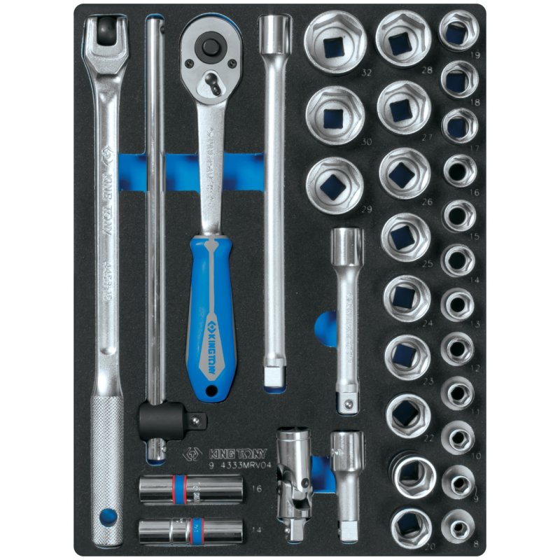 KING TONY Набор торцевых головок 1/2" с принадлежностями, шестигранные, ложемент, 33 предмета KING TONY 9-4333MRV04 купить в Омске цена ✅ - Все для СТО