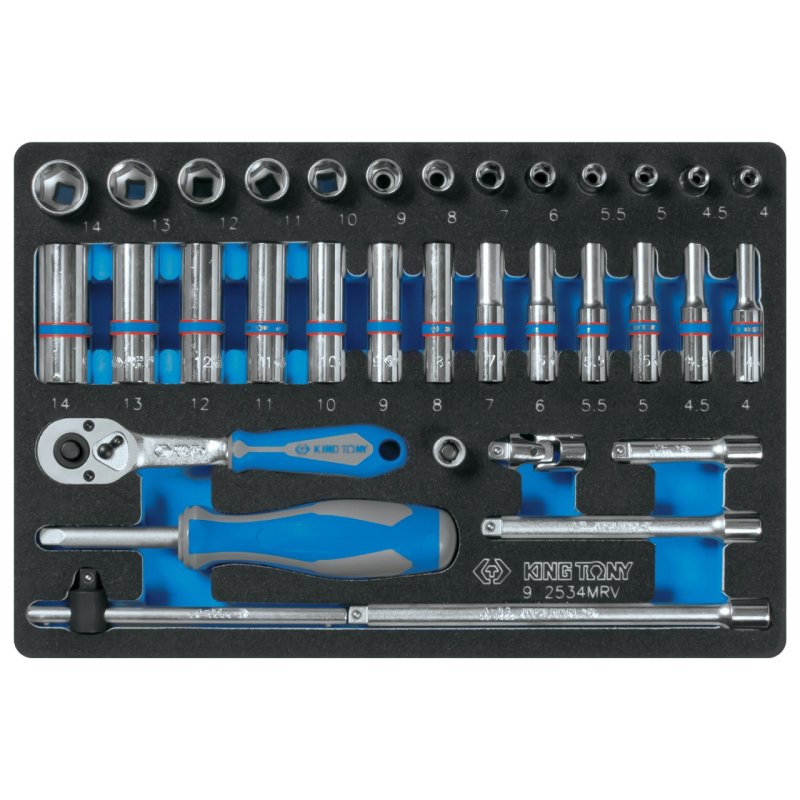 KING TONY Набор торцевых головок с принадлежностями 1/4", ложемент, 34 предмета KING TONY 9-2534MRV