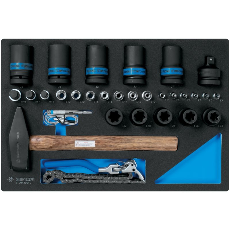 KING TONY Набор ударных головок 1", головок Torx Е-стандарт, молоток, съемник, тестер, ложемент, 30 предметов KING TONY 9-99430MFV купить в Омске цена ✅ - Все для СТО
