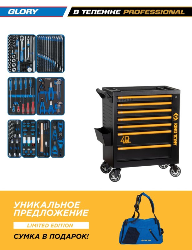 Набор инструментов 152 предмета, "GLORY", в черной тележке KING TONY 9G38-152MRV40 купить в Омске цена ✅ - Все для СТО