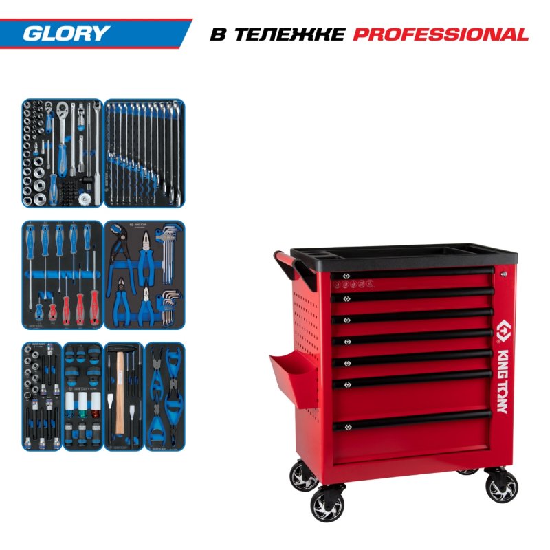Набор инструментов 152 предмета, "GLORY", в красной тележке KING TONY 9G38-152MRVR купить в Омске цена ✅ - Все для СТО