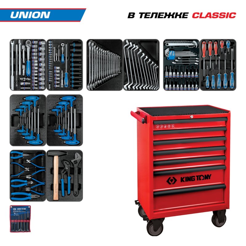 Набор инструментов 173 предмета, "UNION", в красной тележке KING TONY 934-000MR купить в Омске цена ✅ - Все для СТО