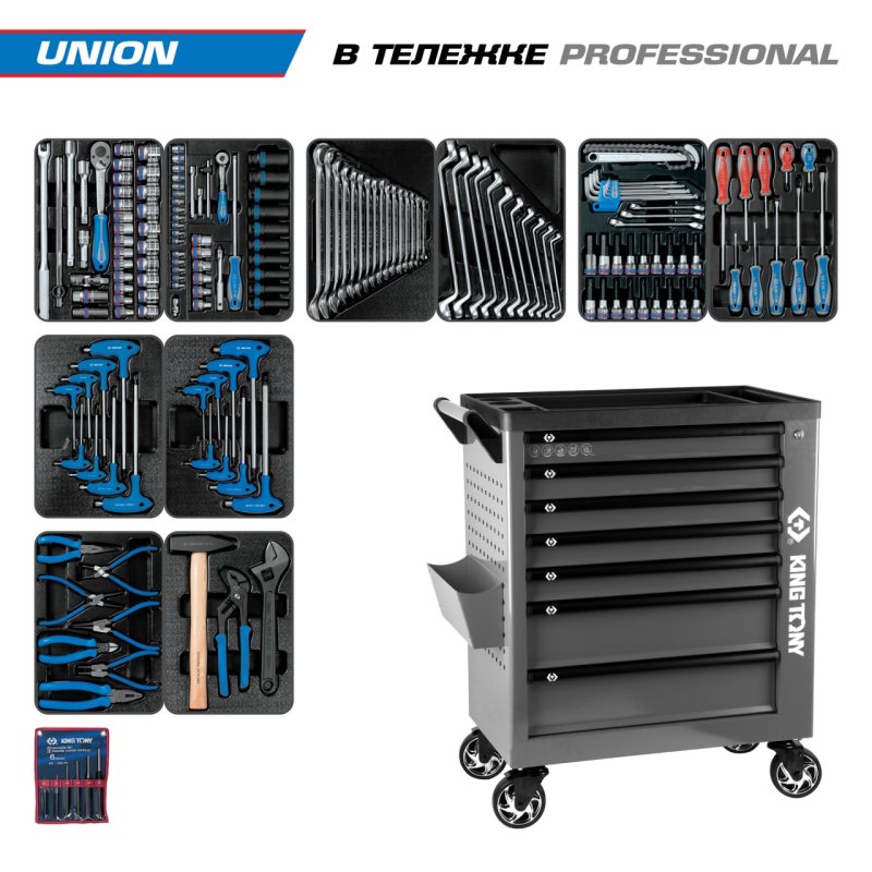 Набор инструментов 173 предмета, "UNION", в серой тележке KING TONY 9G38-000MRG купить в Омске цена ✅ - Все для СТО