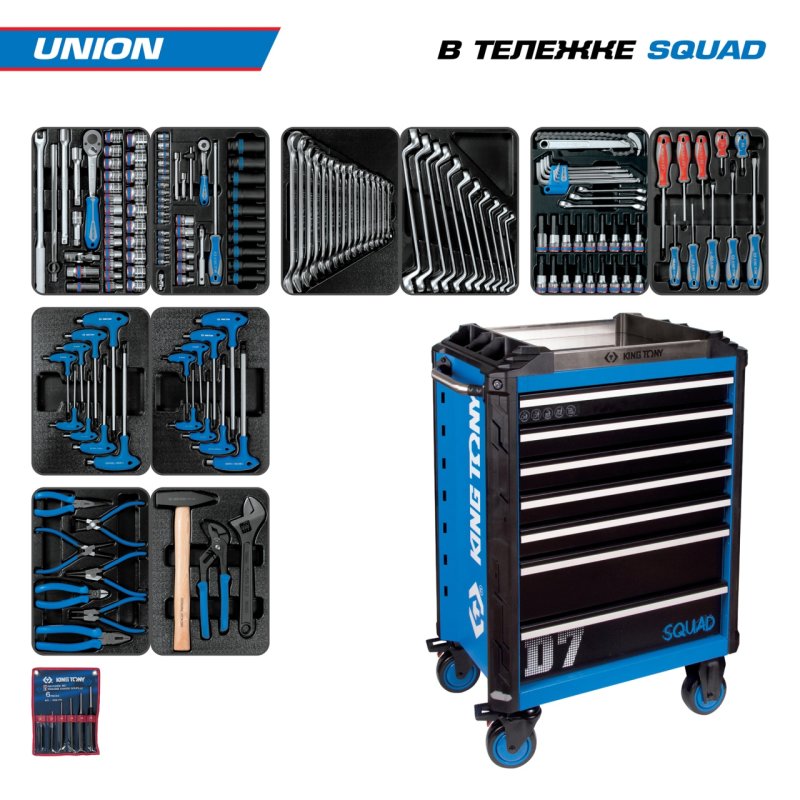 Набор инструментов 173 предмета, "UNION", в синей тележке KING TONY 9SQ31-000MR купить в Омске цена ✅ - Все для СТО