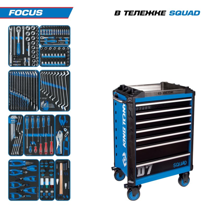 Набор инструментов 188 предметов, "FOCUS", в синей тележке KING TONY 9SQ31-188MRV купить в Омске цена ✅ - Все для СТО