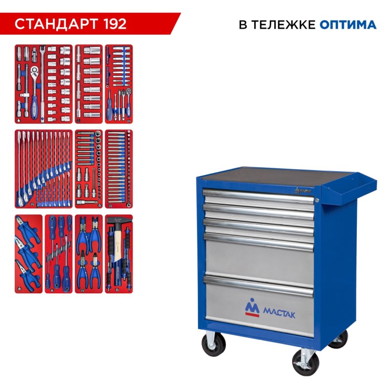 Набор инструментов 192 предмета, "СТАНДАРТ 192", в синей тележке МАСТАК 52-05192B купить в Омске цена ✅ - Все для СТО