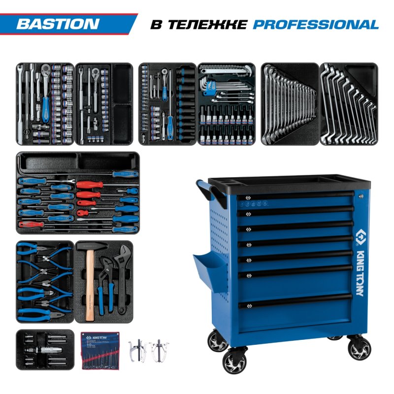 Набор инструментов 204 предмета, "BASTION", в синей тележке KING TONY 9G38-100MRB купить в Омске цена ✅ - Все для СТО