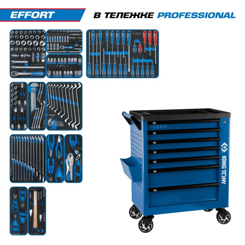 Набор инструментов 235 предметов, "EFFORT", в синей тележке KING TONY 9G38-235MRVB купить в Омске цена ✅ - Все для СТО