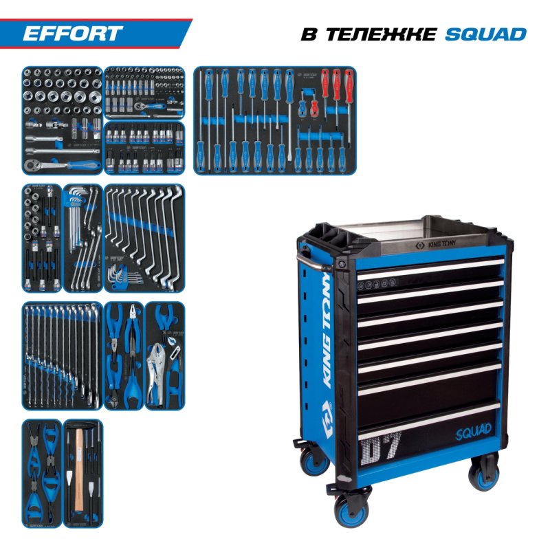 Набор инструментов 235 предметов, "EFFORT", в синей тележке KING TONY 9SQ31-235MRV купить в Омске цена ✅ - Все для СТО