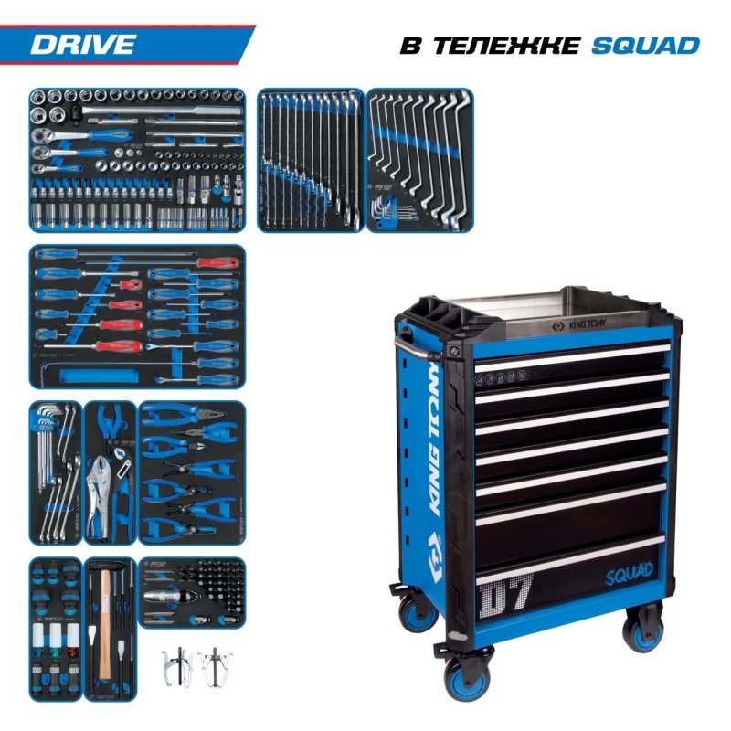 Набор инструментов 251 предмет, "DRIVE", в синей тележке KING TONY 9SQ31-251MRV купить в Омске цена ✅ - Все для СТО