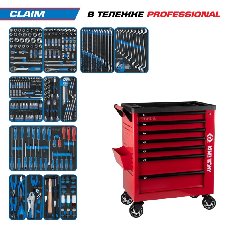 Набор инструментов 286 предметов, "CLAIM", в красной тележке KING TONY 9G38-286MRVR купить в Омске цена ✅ - Все для СТО