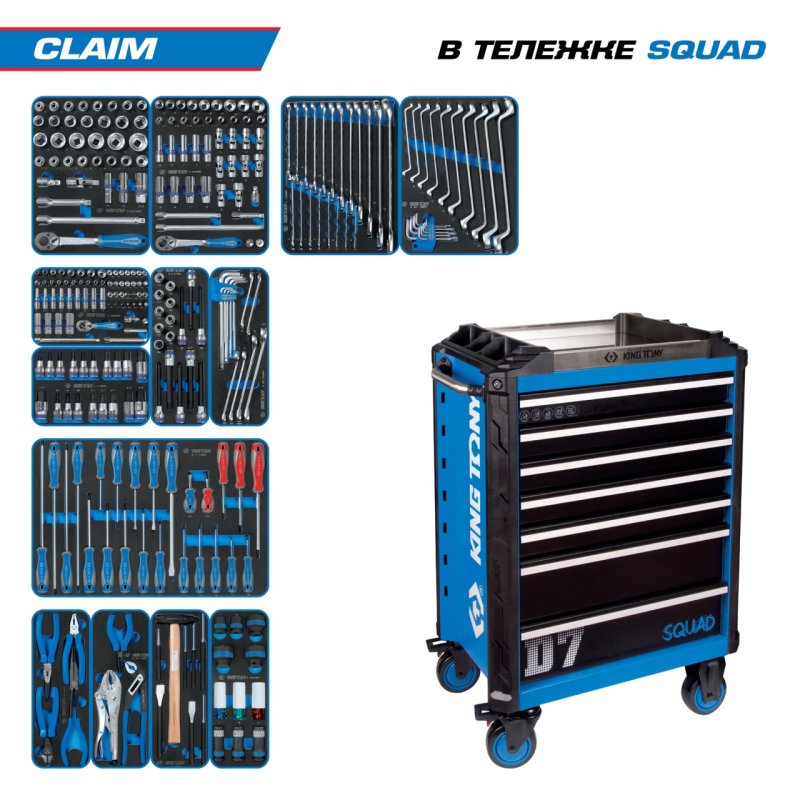 Набор инструментов 286 предметов, "CLAIM", в синей тележке KING TONY 9SQ31-286MRV купить в Омске цена ✅ - Все для СТО