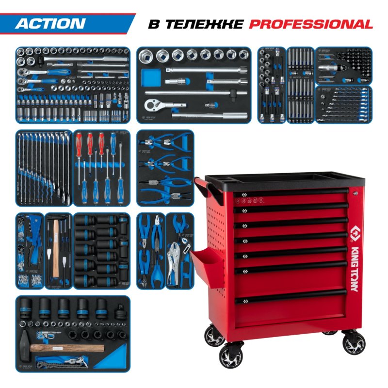 Набор инструментов 327 предметов, "ACTION", в красной тележке KING TONY 9G38-327MRVR купить в Омске цена ✅ - Все для СТО
