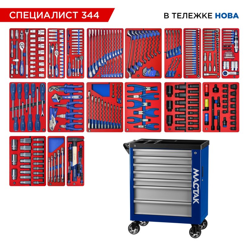 Набор инструментов 344 предмета, "СПЕЦИАЛИСТ 344", в синей тележке МАСТАК 50-07344B купить в Омске цена ✅ - Все для СТО