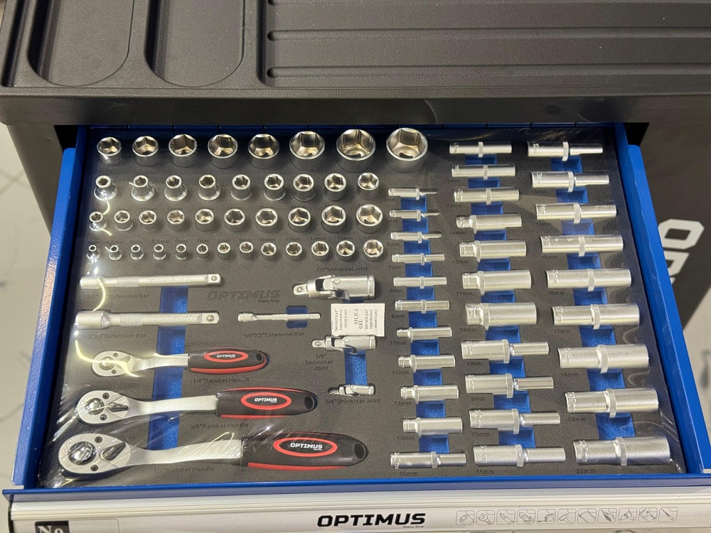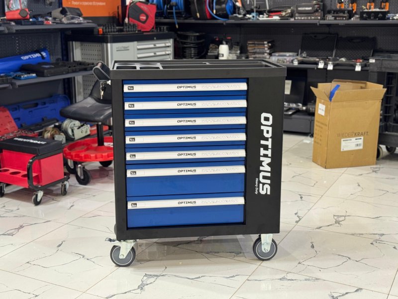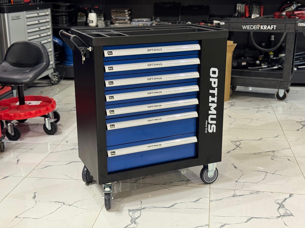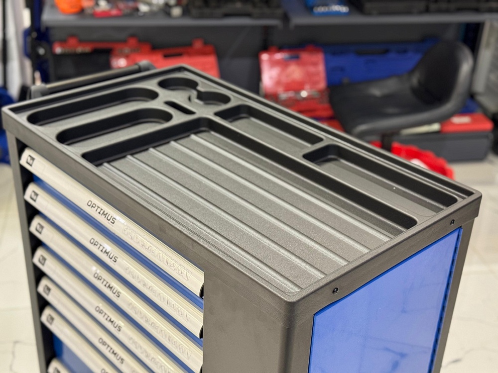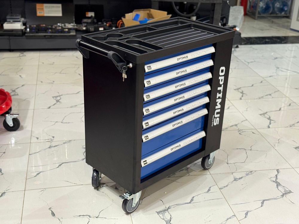 OPT-917P Тележка инструментальная 7 полок с набором инструментов, пластиковая столешница (289 предметов) Optimus купить в Омске цена ✅ - Все для СТО