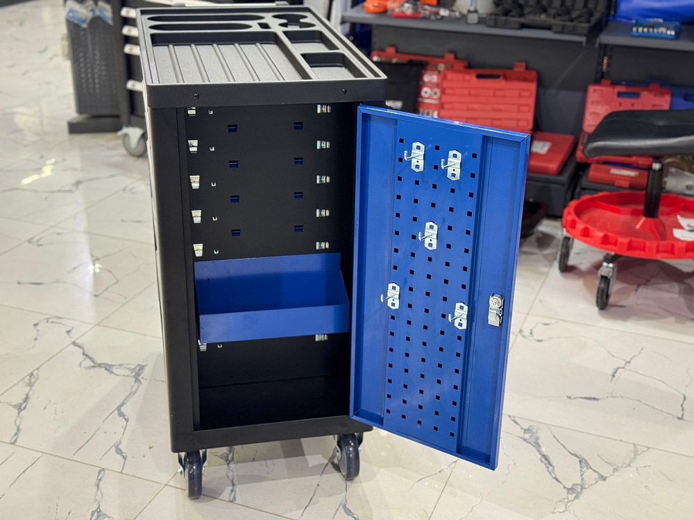 ❗ Обратите внимание, что данная тележка с боковым ящиком, который так же запирается на ключ.