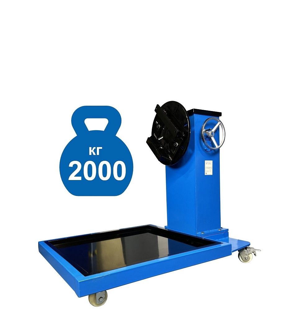 Оснащен редуктором для легкого вращения одной рукой. Редуктор позволяет поворачивать вывешенный двигатель на 360°. Надежная сварная конструкция и 4 колеса обеспечивают маневренность и устойчивость к перевороту. В комплекте поддон для сбора отработанного масла. С универсальным кронштейном для удобства вывешивания и обслуживания ДВС грузовиков. Для сборки/разборки моторов V6, V8 и V12. г/п: 2000 кг.<br /><br />Технические особенности TS-2000KR грузовой кантователь двигателя с редуктором:<br />Редуктор для быстрого вращения и фиксации агрегата одной рукой.<br />Основной вал и редуктор кантователя собраны на роликовых подшипниках<br />Поворот агрегата на 360 град.<br />Универсальный кронштейн для удобства вывешивания и обслуживания двигателей, кпп, мостов и других агрегатов,<br />Надежная сварная конструкция рамы<br />4 полиуретановых колеса (2 - прямых, 2 - поворотных с тормозом) обеспечивают маневренность и устойчивость, не царапают плитку и наливные полы.<br />Съемный металлический поддон для мелких деталей и сбора отработанного масла<br />Лоток для инструмента и крепежа<br />Можно установить грузовой кантователь вплотную к моторному отсеку грузового автомобиля<br />Если крепления на агрегате не совпадают с штатными отверстиями на фланце, допускается сверление дополнительных отверстий в диске.<br /><br />Грузоподъемность стенда составляет 2000 кг, при габаритной длине (вылете от монтажной площадки) закрепляемого агрегата, не более 0,9 м.<br />