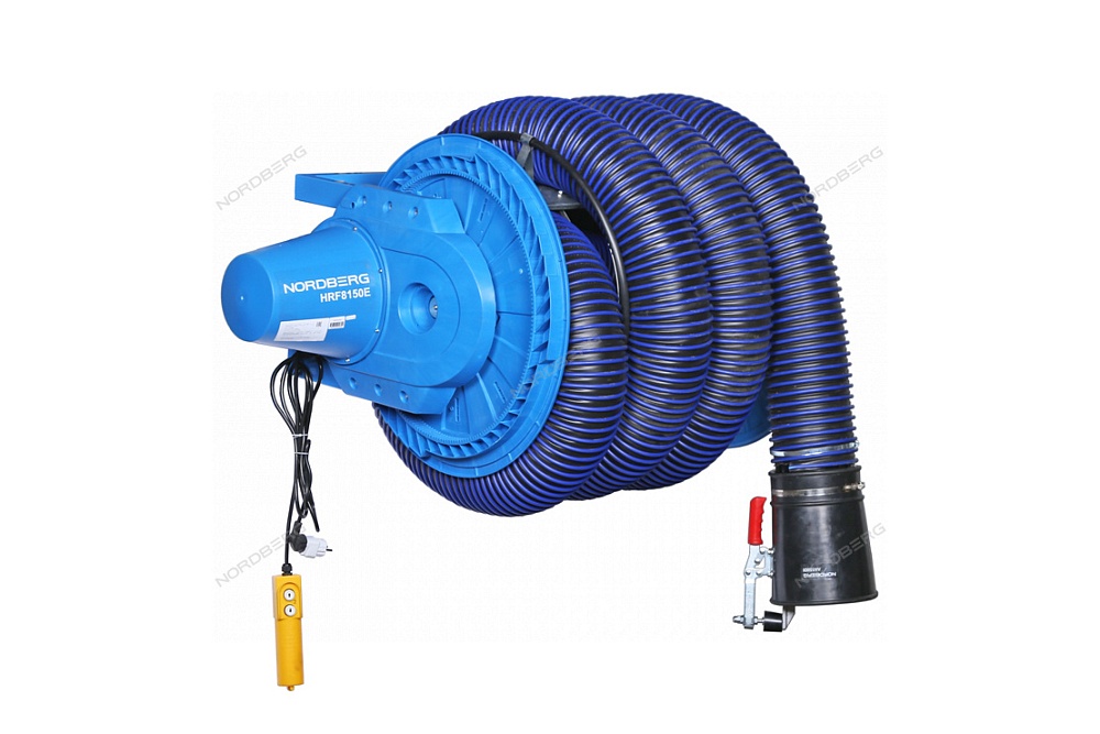 Катушка для сбора выхлопных газов с автоматическим приводом со шлангом D=150 и насадкой NORDBERG HRF8150E-KIT купить в Омске цена ✅ - Все для СТО