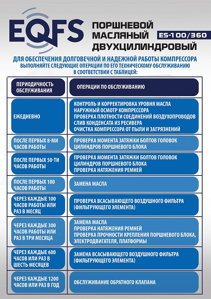 Технические особенности компрессор поршневой ES-100/360: