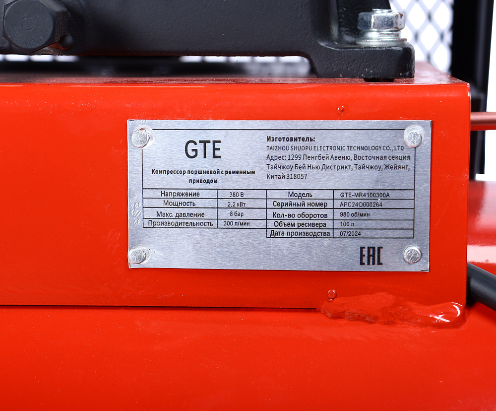 GTE-MR4100300A Компрессор поршневой с ременным приводом 380В купить в Омске цена ✅ - Все для СТО