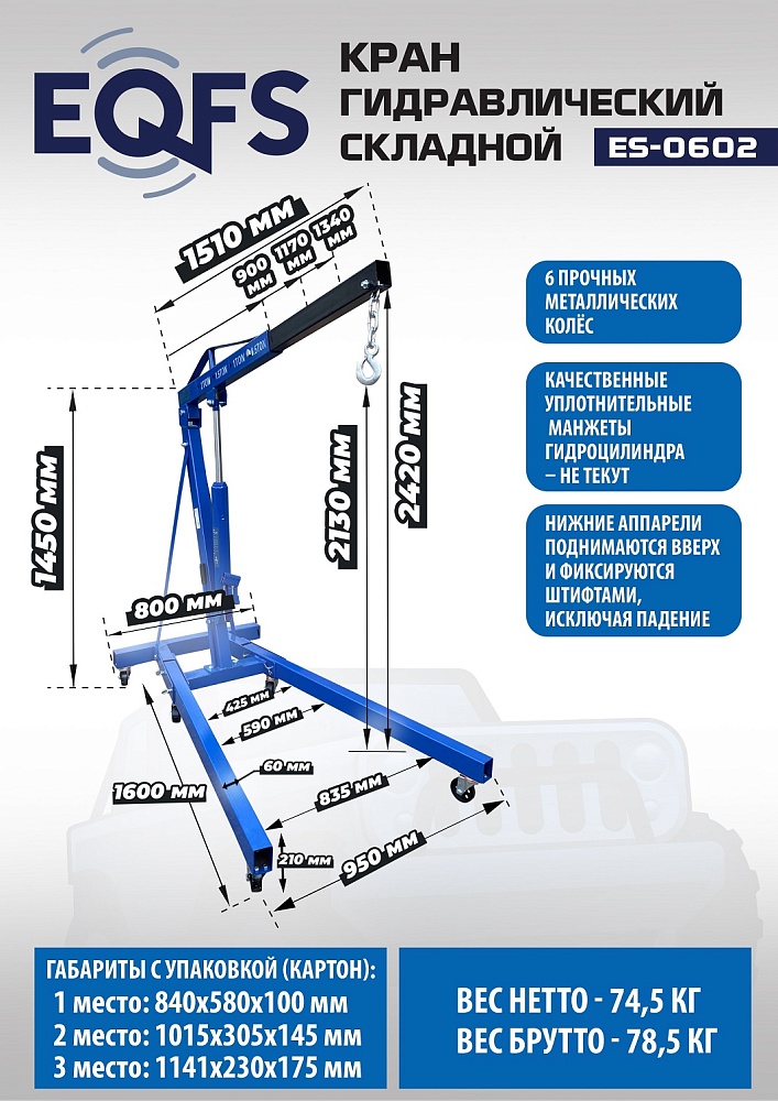 ES-0602 Кран гаражный, 2 т купить в Омске цена ✅ - Все для СТО