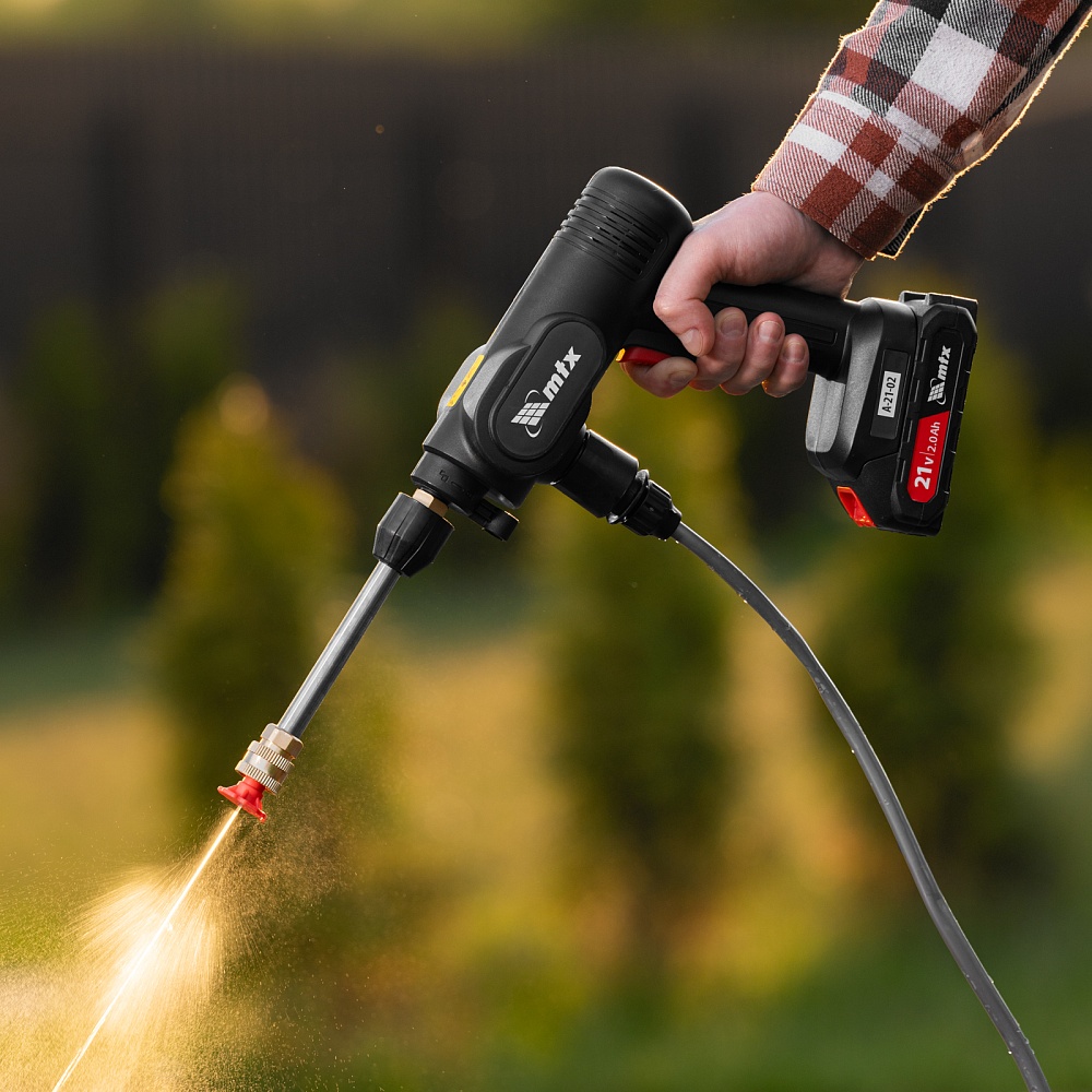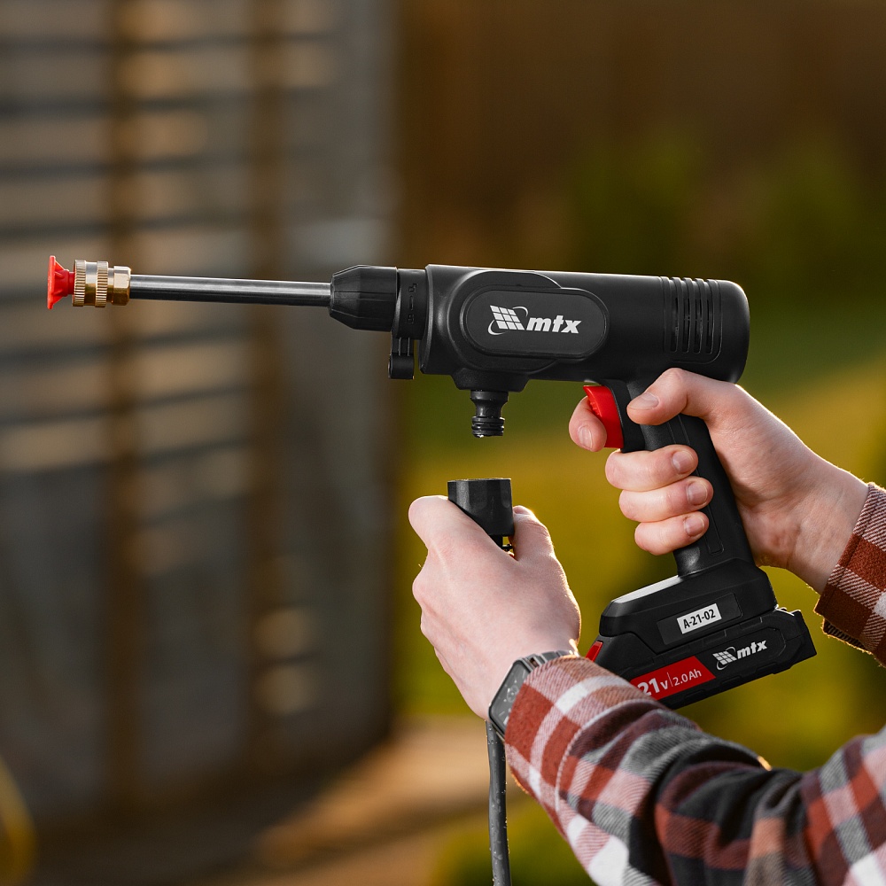 Моечная машина высокого давления аккумуляторная А-21-02, 40 бар, 4 л/мин, Li-ion 21 В, 2 акк.// MTX купить в Омске цена ✅ - Все для СТО