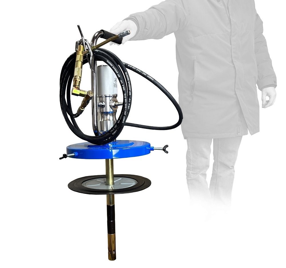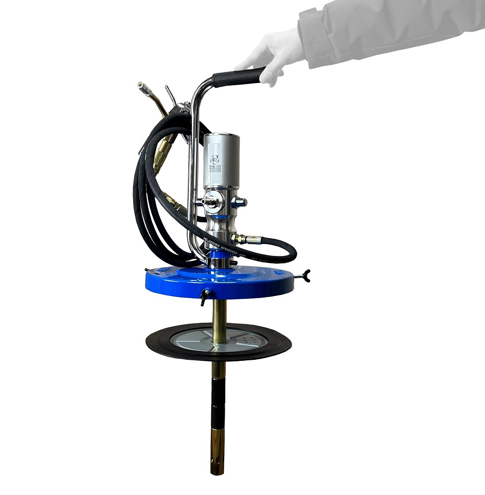 Нагнетатель густой смазки K77220 AE&T пневматический предназначен для подачи консистентной смазки (солидола) из стандартной бочки 180-220 кг в смазываемые узлы под давлением до 350 бар.