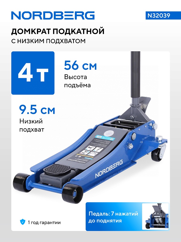 Домкрат подкатной 4 т, низкий подхват, педаль NORDBERG N32039 купить в Омске цена ✅ - Все для СТО