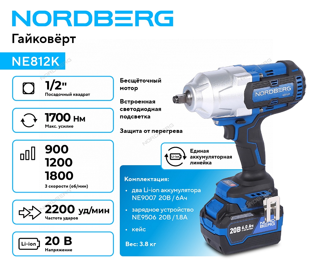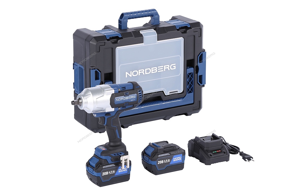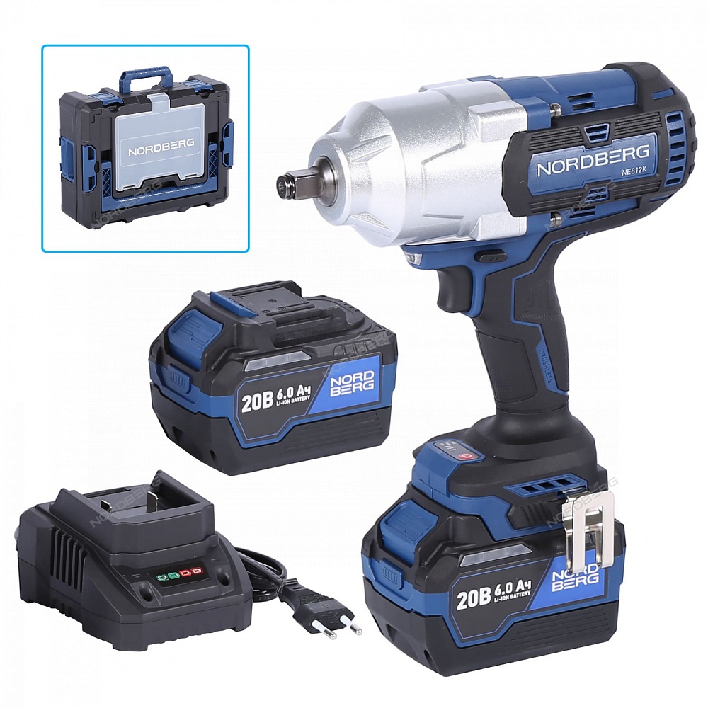 Гайковерт аккумуляторный, 1/2", 21 В, 1700 Нм, 2 аккумулятора 6A и зарядное устройство, в кейсе NORDBERG NE812K купить в Омске цена ✅ - Все для СТО