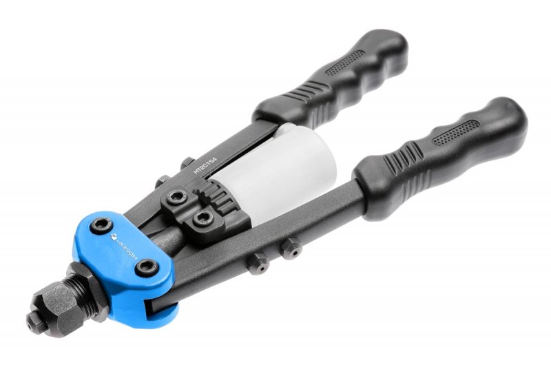 Двуручный короткий заклепочник для стальных и алюминиевых заклепок. Широко используется в автосервисных мастерских и при монтажных работах.