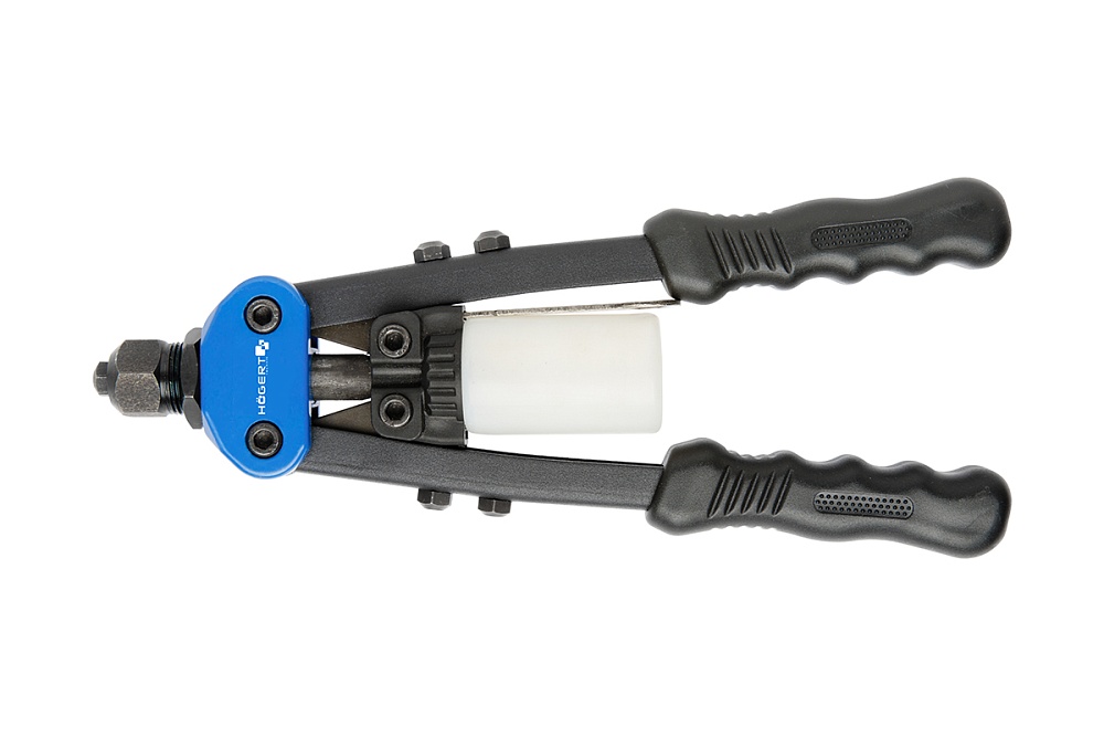 HOEGERT Заклепочник двуручный, короткий, 250 мм, для стальных и алюминиевых заклепок, 5 сменных головок, 2,4 - 4,8 мм купить в Омске цена ✅ - Все для СТО
