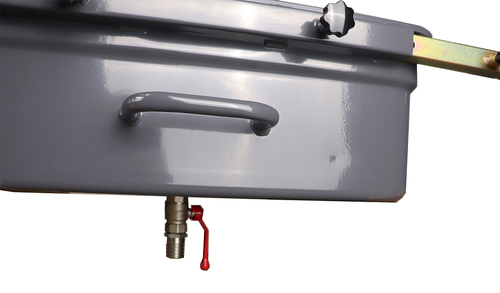 Емкость для сбора отработанного масла и других технических жидкостей KRAFTWELL, модель KRW1800 предназначена для использования на яме. Для этого она оснащена регулируемыми по ширине направляющими с колесами. Регулировка ширины в диапазоне от 750 до 1200 мм позволяет установить емкость практически на любую яму.