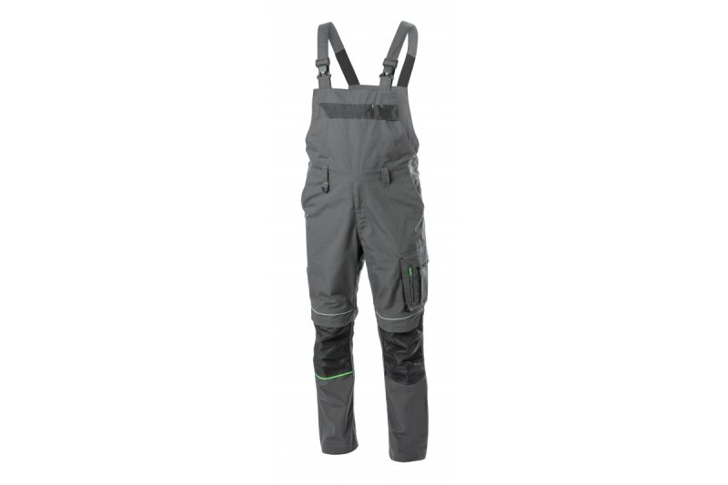 Полукомбинезон доступен в стильном темно-сером цвете с зелеными акцентами и широкой гамме размеров (от S до 3XL). Идеально подходит для производственных и строительных рабочих. Также рекомендуется для слесарей, сервисных и технических специалистов.