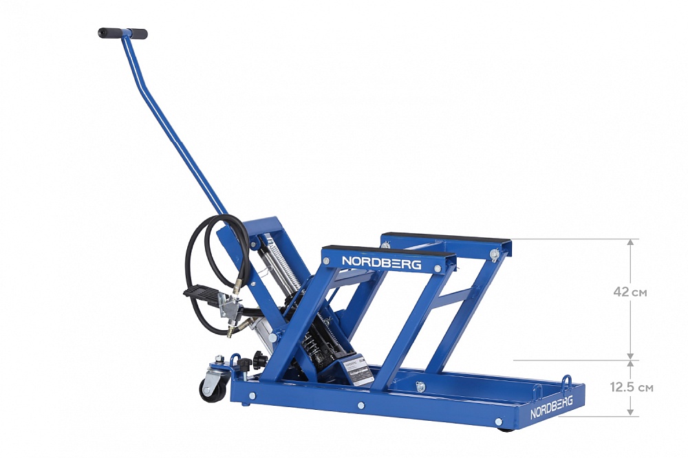 NORDBERG N32008 — профессиональный подкатной мотодомкрат для проведения технического обслуживания и ремонта. Применяется в мотомастерских, автосервисах и гаражах.