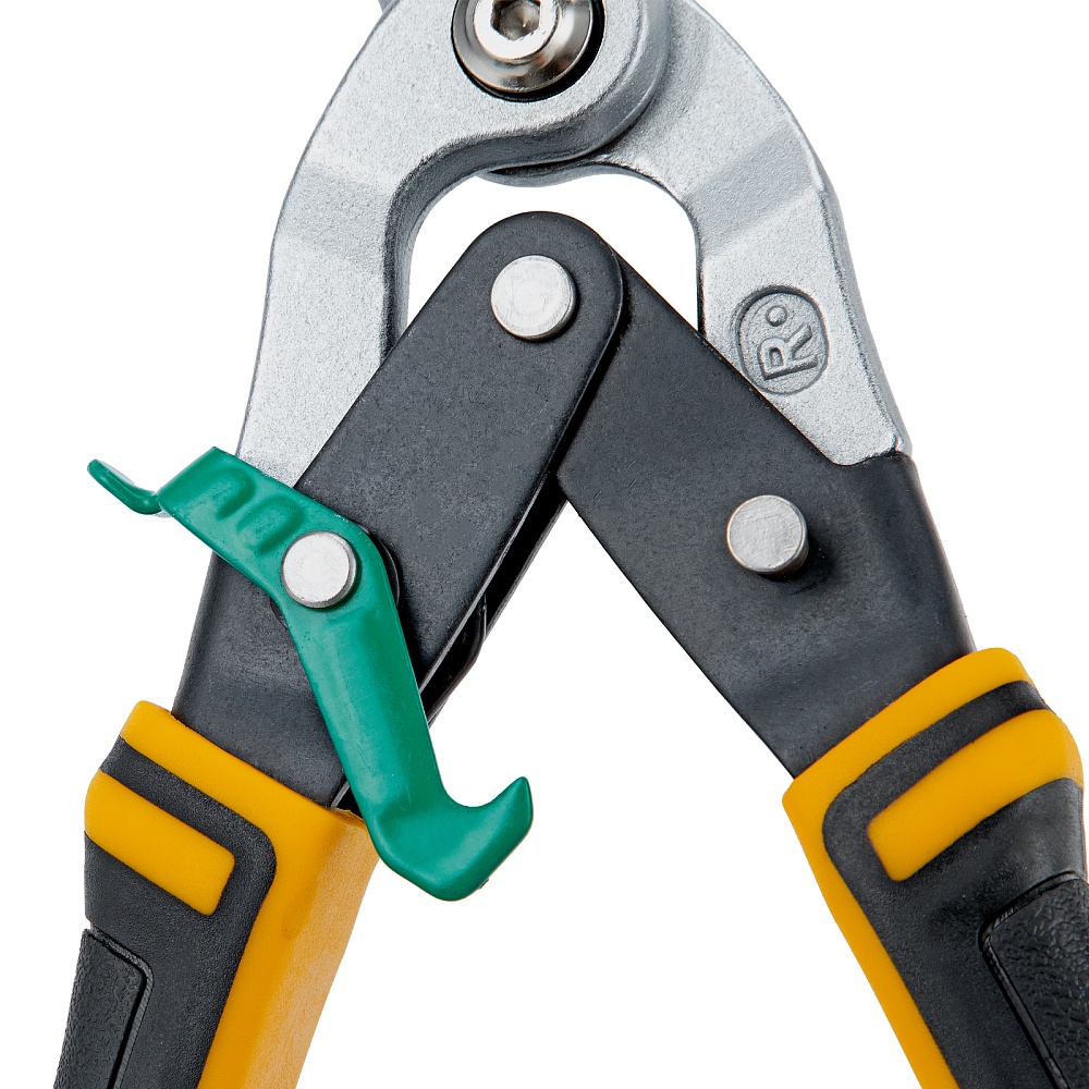 <p>Ножницы по металлу Denzel 78371 общей длиной 270 мм, из стали-CrMo, с трехкомпонентными рукоятками, предназначены для прямого и правого реза листовых металлических заготовок и металлопрофиля толщиной до 1,2 мм. Инструмент с усиленной конструкцией осевого шарнира рассчитан на профессиональное использование. Ножницы используются для проведения строительных, кровельных и слесарных работ.</p><h2>Преимущества</h2><ul><li>Высокое качество исполнения — ножницы изготовлены из прочной хромомолибденовой стали методом горячей штамповки, остро заточенные кованые лезвия с насечками не соскальзывают с заготовок.</li><li>Эффективность — режущие кромки закалены до твердости 60-62 HRC и легко справляются даже с прочной «нержавейкой».</li><li>Безопасность — блокировочный замок предотвращает случайное раскрытие лезвий во время транспортировки и хранения.</li><li>Комфортная работа — плоский соединительный винт не цепляется за заготовки, удлиненные трехкомпонентные рукоятки не выскальзывают из руки.</li><li>Удобное хранение — на рукоятке имеется проушина для подвешивания на крючок или гвоздь.</li></ul>