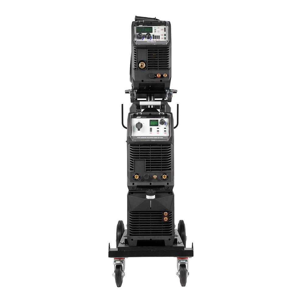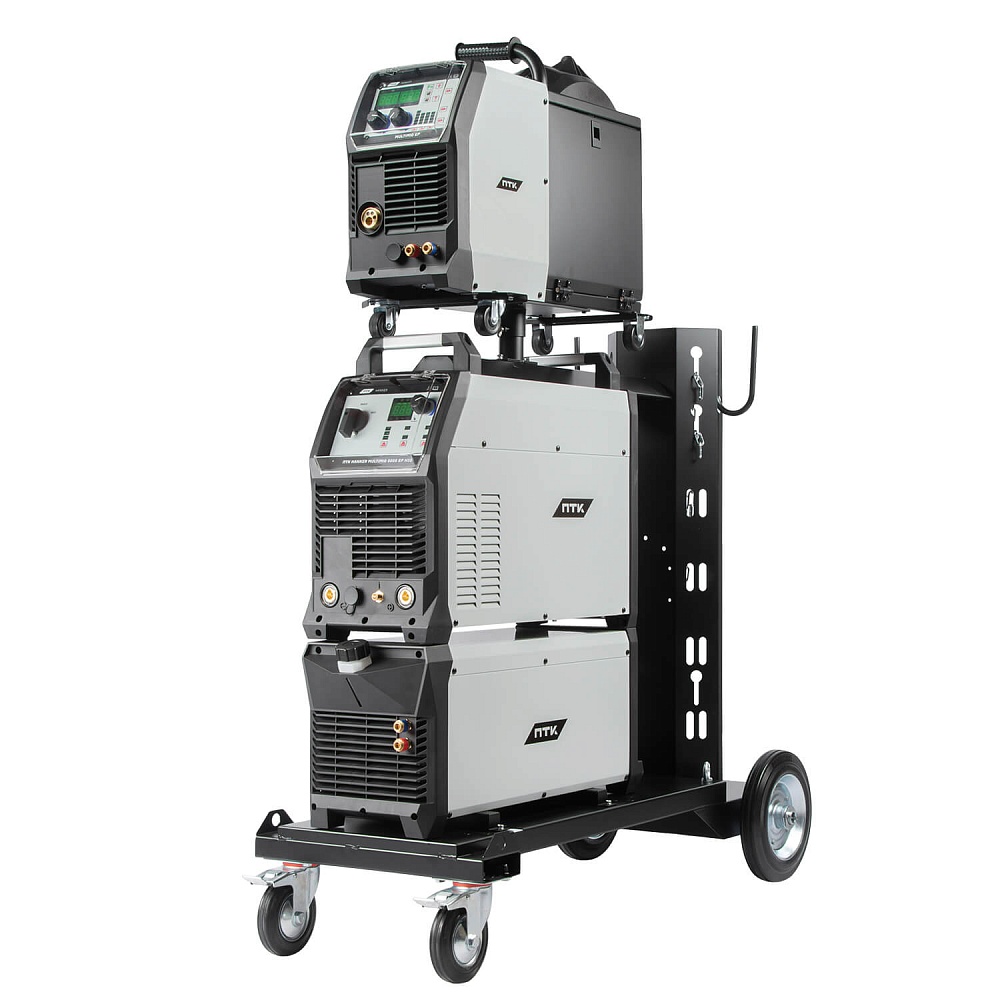 Аппарат поставляется в комплекте с тележкой для перемещения аппарата, подающего механизма, БЖО и баллона с защитным газом. Тележка обладает надежной усиленной конструкцией, где толщина металла около 3 мм. Передние вращающиеся колеса с тормозом и высокие устойчивые задние колеса обеспечат быстрое перемещение оборудования в сборе по рабочей зоне.