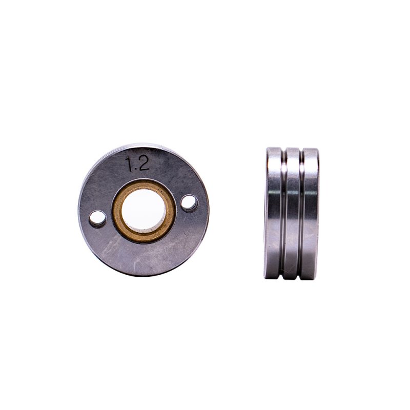 Подающий ролик для стальной проволоки 1.0-1.2 мм для сварочных полуавтоматов AuroraPro SKYWAY 300-330. Данный ролик является сменным элементом подающего механизма сварочного аппарата. Он обеспечивает стабильную и равномерную подачу проволоки в зону сварки. Размер канавки ролика подбирается в соответствии с диаметром сварочной проволоки. Подающий ролик имеет две направляющие канавки, при изменении сечения проволоки нужно только перевернуть ролик нужной стороной. Используется для стальной проволоки, так как ролик имеет V-образную форму канавки.