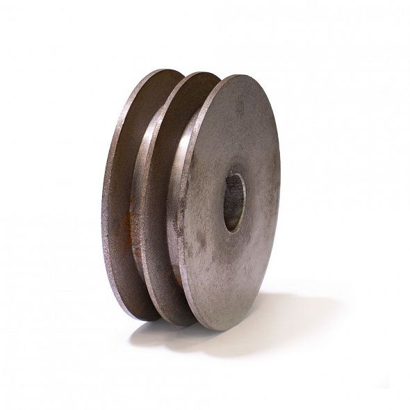 Малый шкив ременного компресора устанавливается на валу электродвигателя. С помощью ремней малый шкив передаёт вращение на большой шкив. Подбирая пропорции размеров малого и большого шкивов инженеры производства добиваются оптимального числа оборотов вала привода поршневой группы.