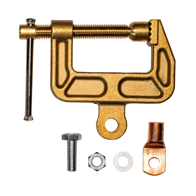 Винтовой зажим на массу из латуни предназначен для соединения свариваемых деталей с обратным кабелем, который подключен к источнику тока. Главная задача зажима - обеспечивать надёжный электроконтакт.