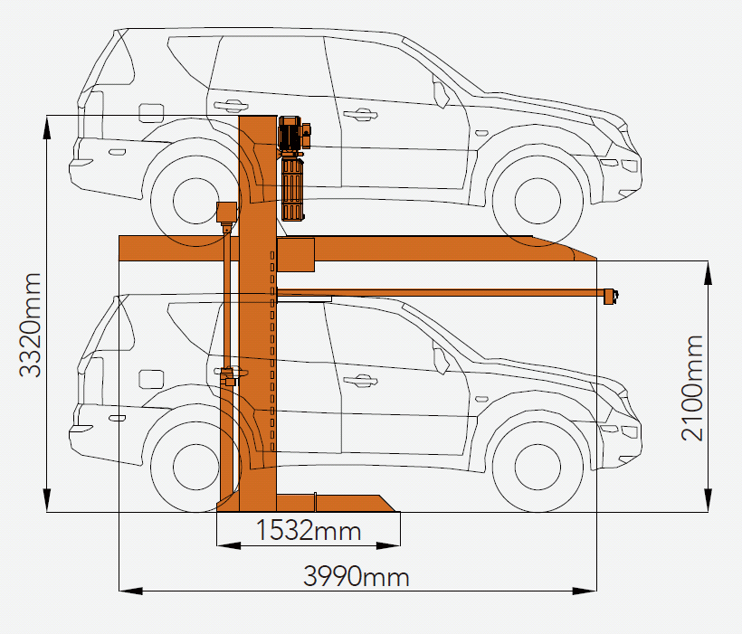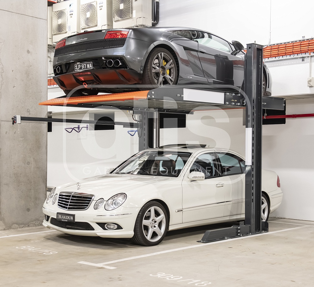 Подъемник выдерживает до 2.7 тонн на машиноместо и оснащён системой двойной защиты от падения.