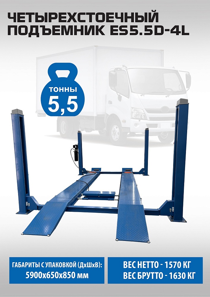 ES5.5D-4L Подъемник 4-хст. г/п 5,5 т, 380 V с траверсой 2,0 т купить в Омске цена ✅ - Все для СТО
